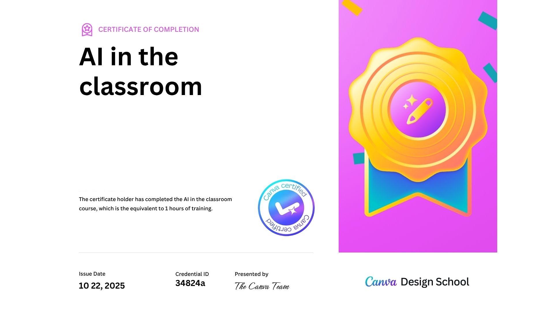Canva 的設計教學平台 Design School 長期提供免費自學課程與結業證書;2025 年 4 月官方宣布 「Design School 2.0」,把教學資源內嵌在 Canva,並強化「課程+認證」與即時教學工具,讓更多使用者(含教育者與非設計背景)能系統化學習並取得官方證明。在此之前,教育者向的 Teacher Essentials 認證 與 AI in the Classroom 認證已於 2024 年 6 月正式推出;完成短時數課程並通過測驗即可獲頒數位證書。